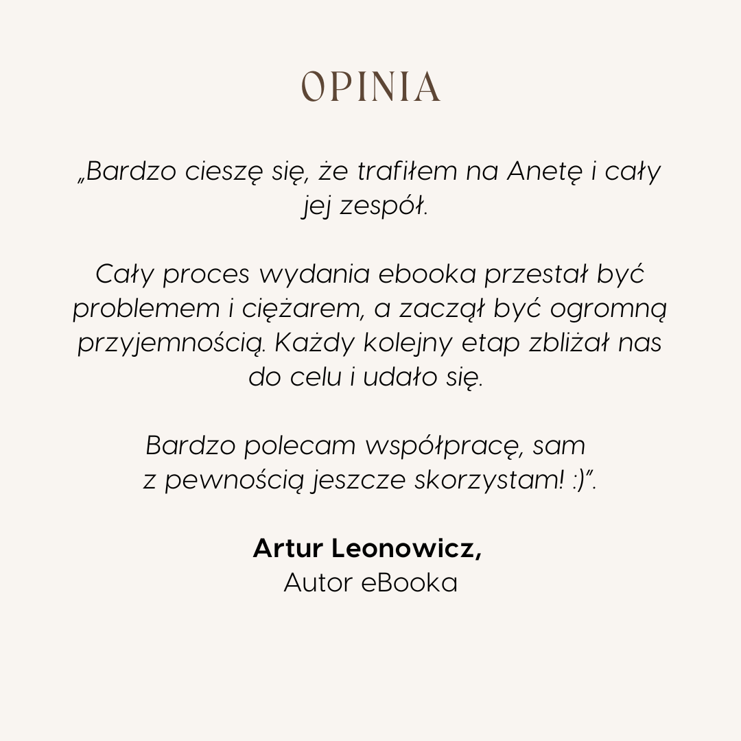Nasi Autorzy uwielbiają to, że mogą z nami załatwić dosłownie wszystko, co związane z wydaniem eBooka – redakcję, korektę, projekt, a także sprzedaż.